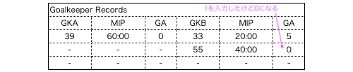 その結果、下の画像のようにゴールに記録でキーパーのNo.が間違っている事が判りました。
