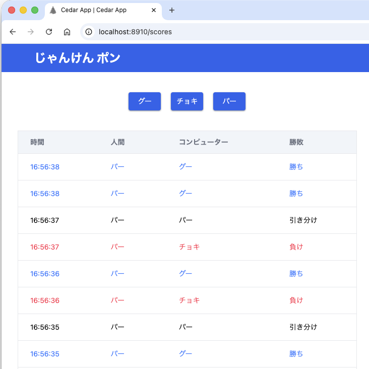 バックエンドのサービスは一覧表示・詳細表示・新規作成・変更・削除のコードでしたが、ジャンケンアプリ用に変更しました