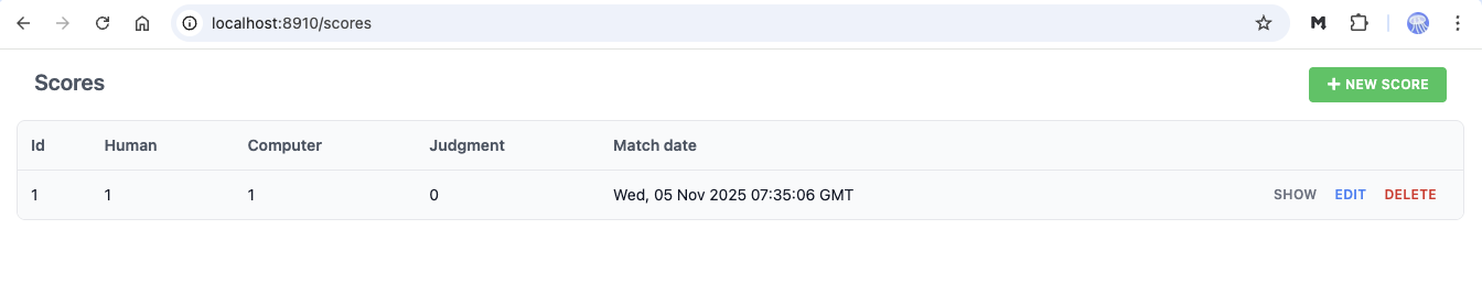 matchDate DateTime @default(now())の定義のせいか、新規作成の画面でデータを作成するとエラーになってしまいますが気にぜず進めます