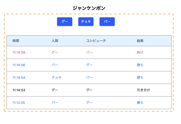 いつものジャンケンアプリです。😄 画像のオレンジ色の点線内がFrame(後で説明します)になっています。